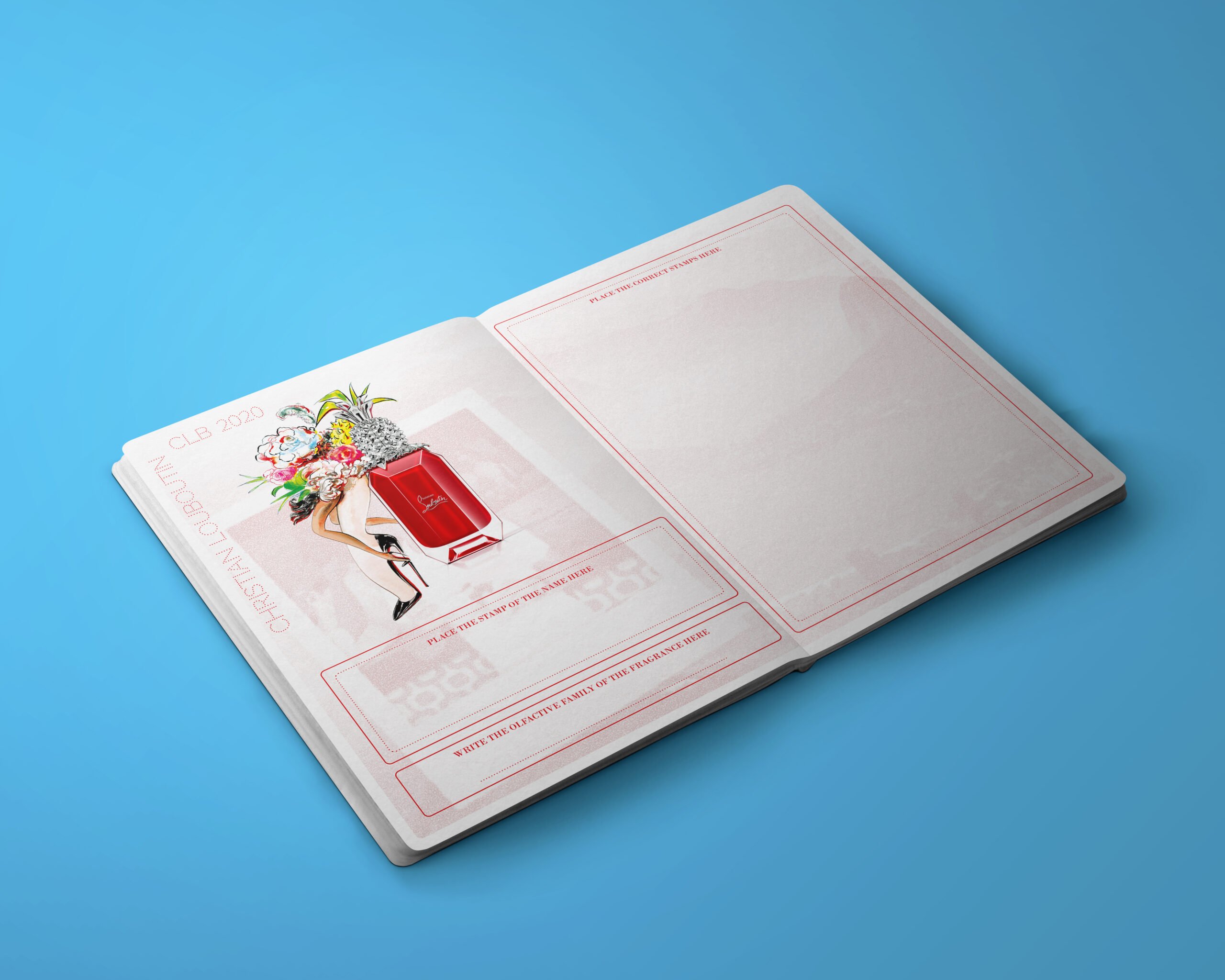 Pasaporte destinado a sesiones de formación de la colección de fragancias Loubiworld de Christian Louboutin.